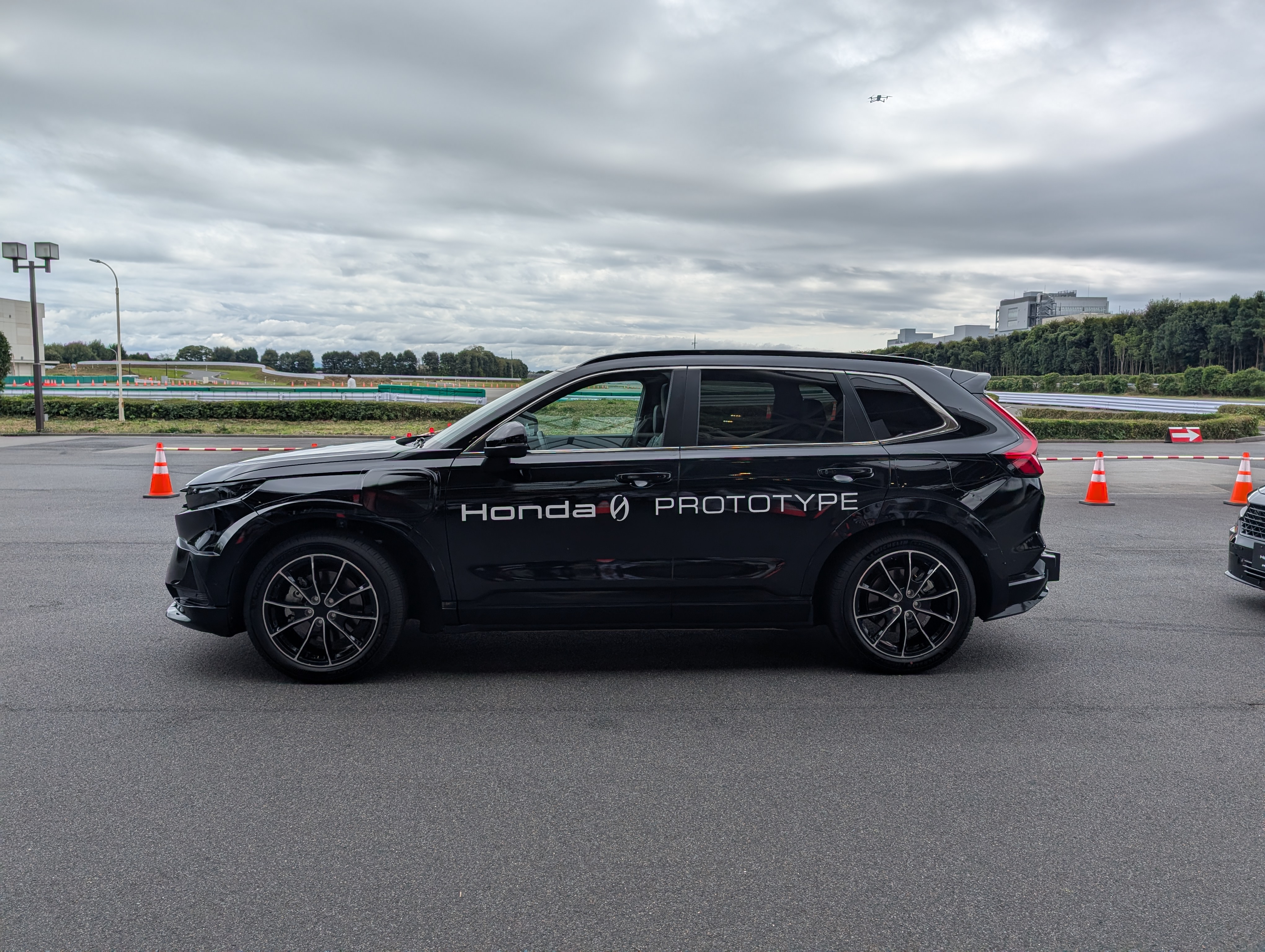 We got a total of three laps of a closed course at Honda Global in Tochigi, Japan, which included a short acceleration run, a rising hairpin, and a series of slaloms. There were two prototype vehicles, a Honda Civic and a Honda CR-V, riding atop the Honda Zero platform, including a new battery pack and electric motors.