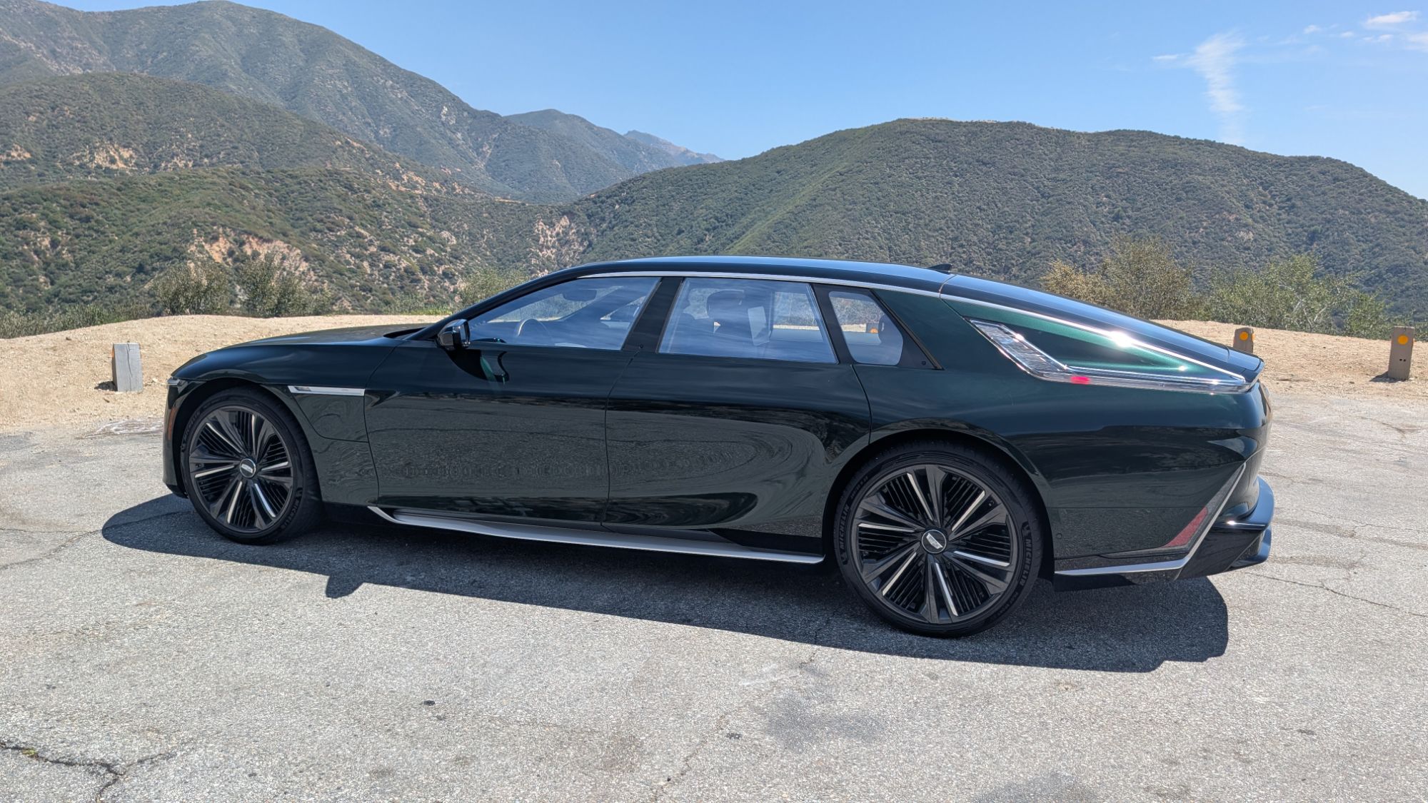 Part of the route took us up to Angeles Crest, one of the famed windy roads that Southern Californians frequently enjoy hooning. I expected the 18-foot-long vehicle (longer than an Escalade) to feel like a beluga whale swimming toward Big Tujunga Canyon, but the Celestiq ate up the curves at a blistering speed and nary a complaint from the special Michelin Pilot Sport EV tires.